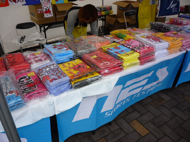 会場の外では、国体グッズ&チーバくんグッズが大量陳列!