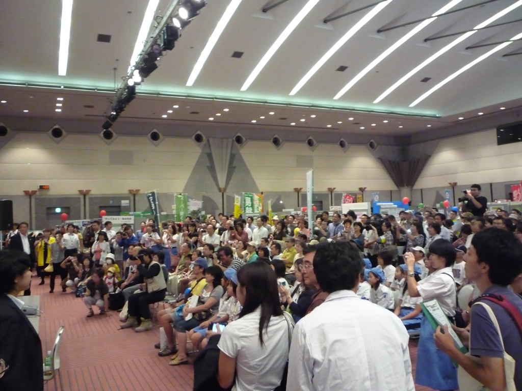写真は、子どもたちが知事にエコメッセージを発表する様子ですが、