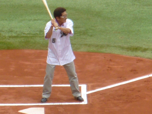 具志堅さんの始球式(バッター)。