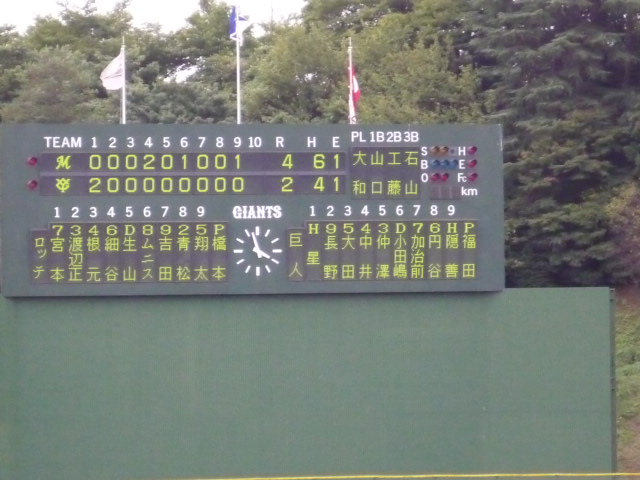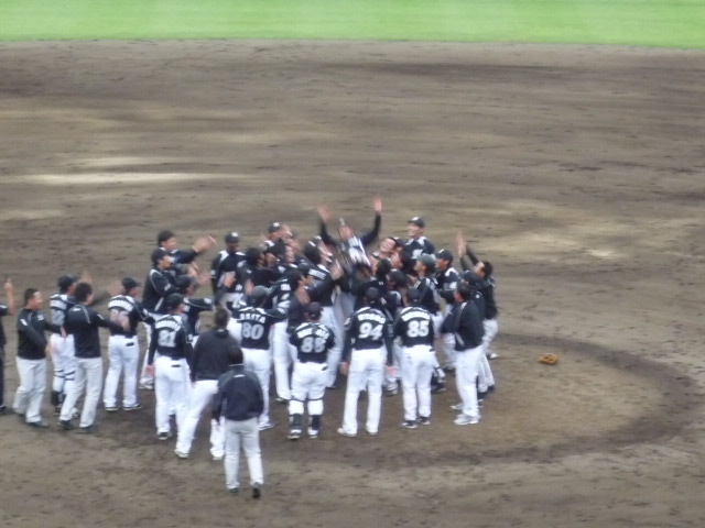 この試合で勝つか引き分ければ優勝の決まるロッテは、2点を追う四回に同点とし、六、九回に1点ずつを奪って競り勝った。就任1年目で優勝したロッテの高橋2軍監督は「重圧がかかる中でプレーするのは、いい経験になる。2軍の優勝は選手の力が付いてきた結果。1年間みんなで頑張ってやってくれたので、選手権は楽しくやりたい」と笑顔を見せた。