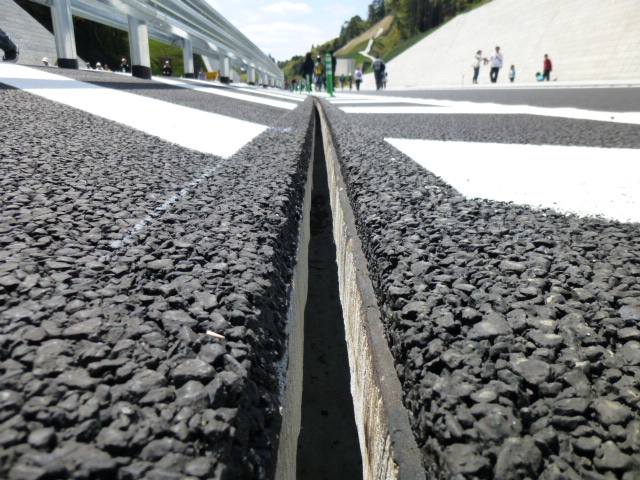 舗装面を見れば、雨水を流す排水溝や、居眠り防止用の音響白線(ランブルストリップス)を