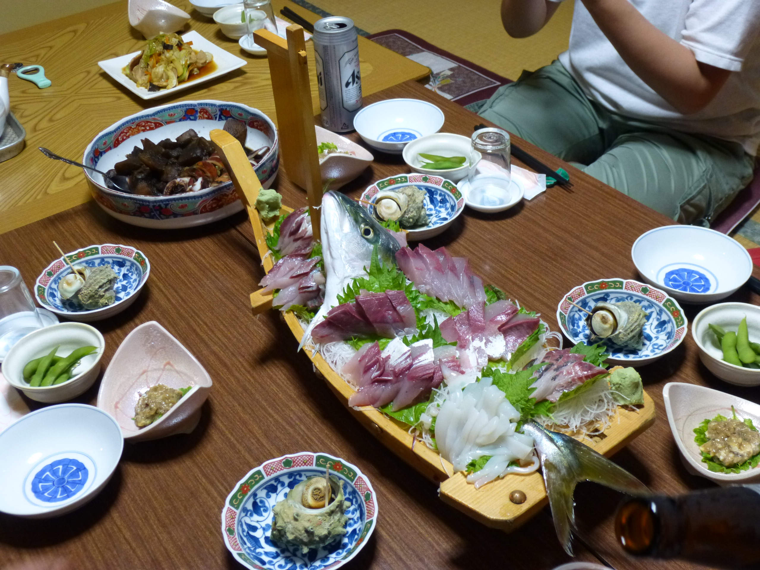 刺身に、イカの煮付けに、石鯛に、サザエの壺焼きに、なめろうなどなど…