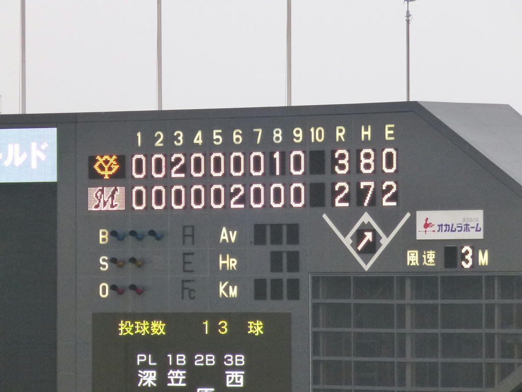 試合は、唐川・成瀬の豪華リレー。この分だと開幕は成瀬のようですね。