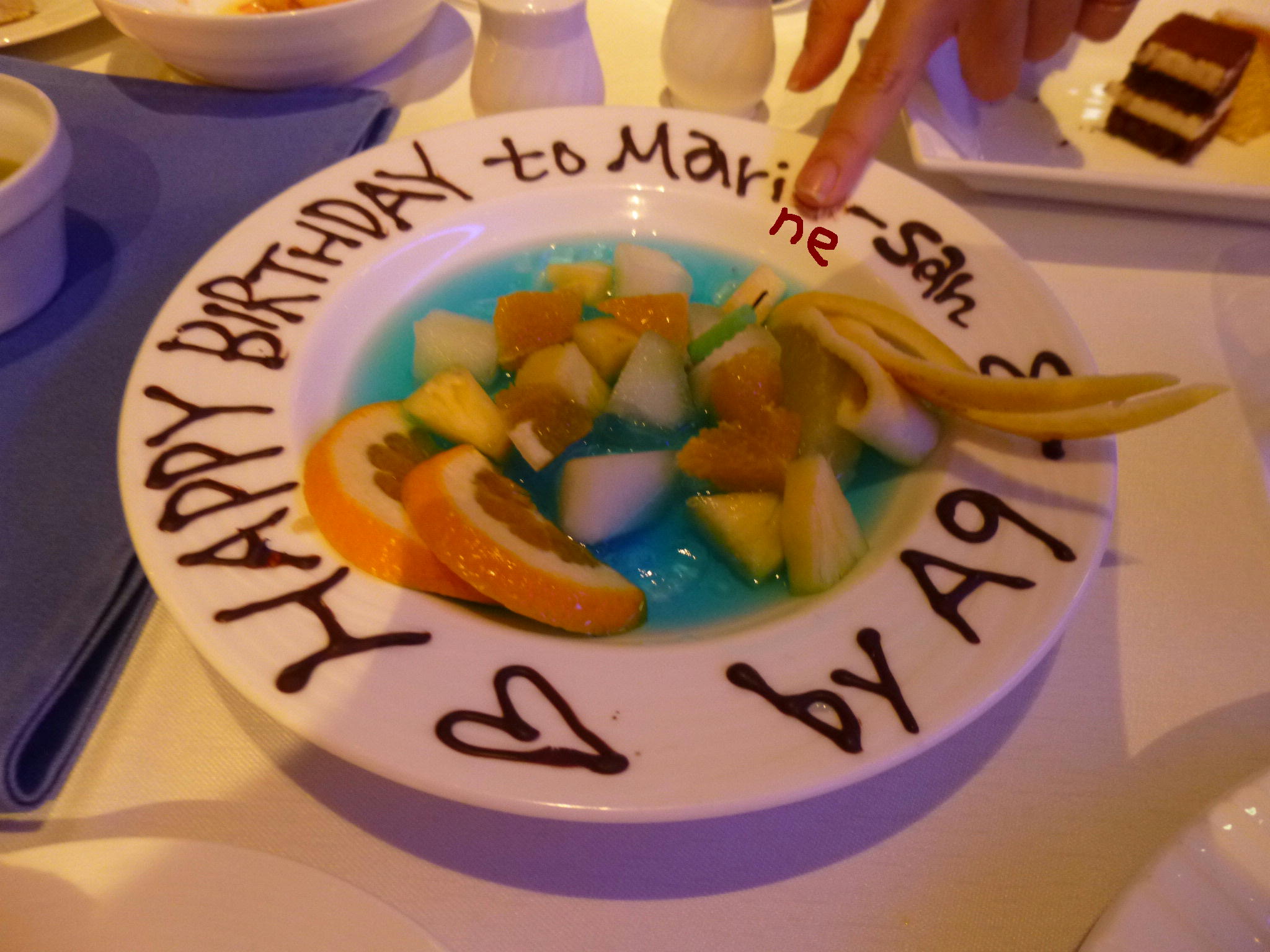 マリンブルーのサワーに漬けられたフルーツポンチでした。