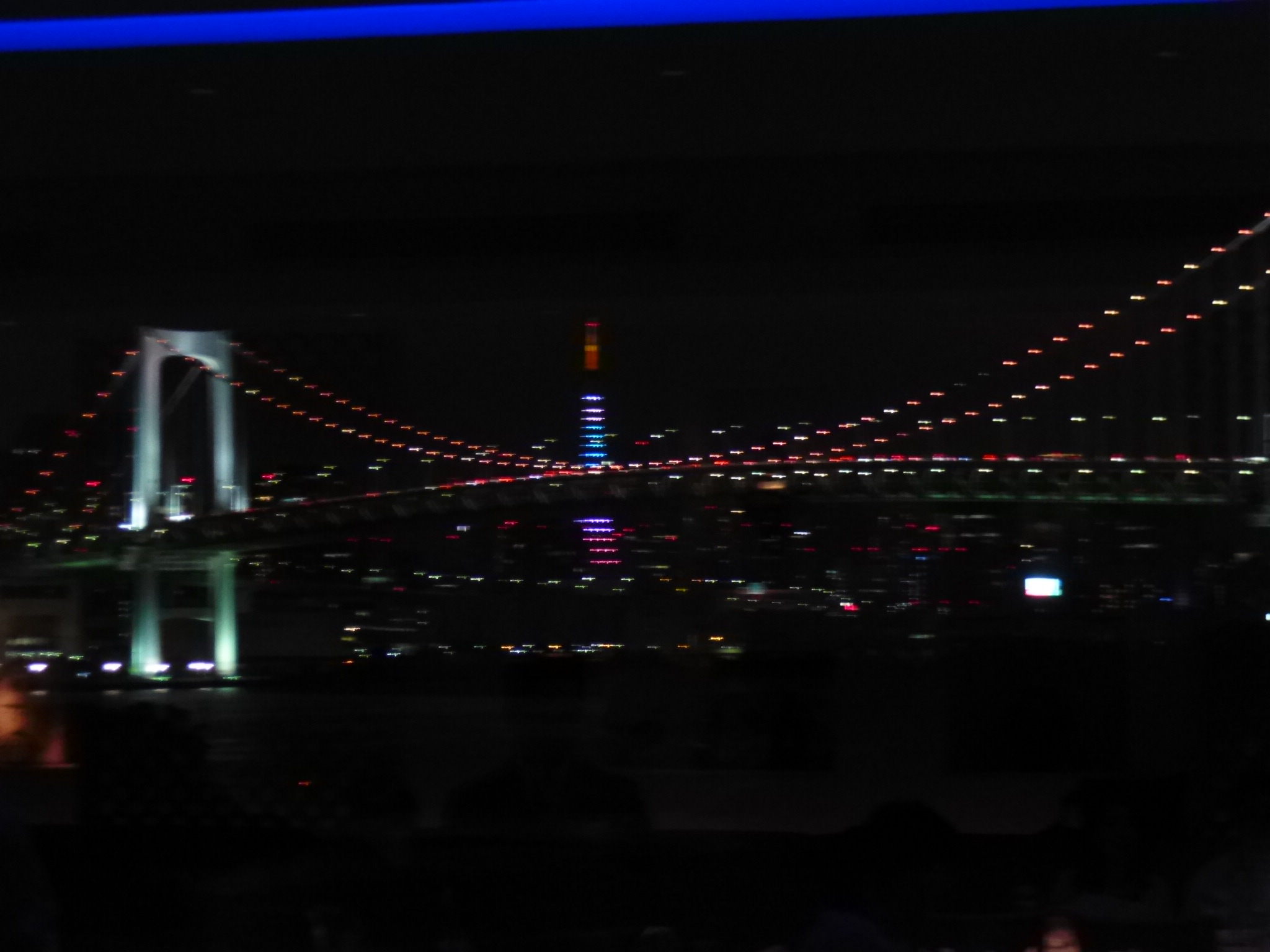 そして、お台場の夜景。レインボーブリッジと東京タワーがくっきり。