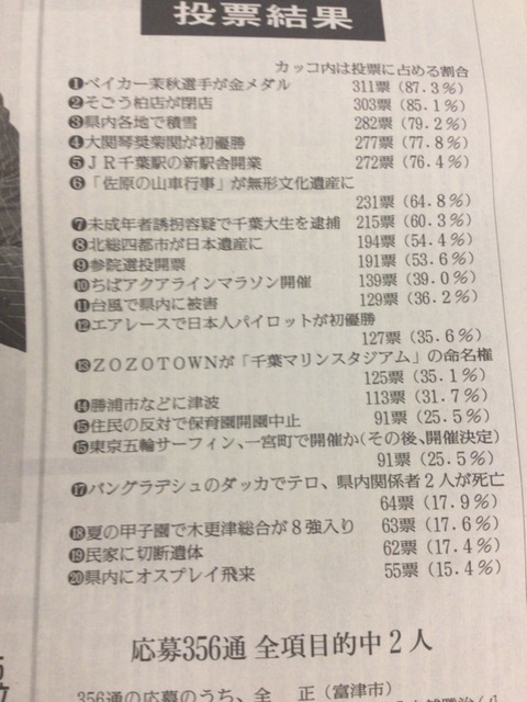毎年恒例なので、まとめておきます。船橋市の10大ニュースも併せて。