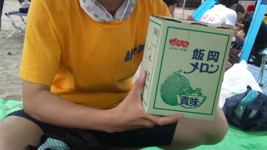 予選後の抽選会で、しげちゃんが賞品のメロンを見事ゲット!