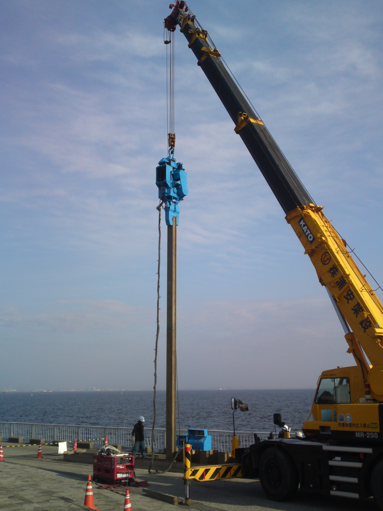 サンドコンパクションパイル工法で鉄柱が潜るときの、