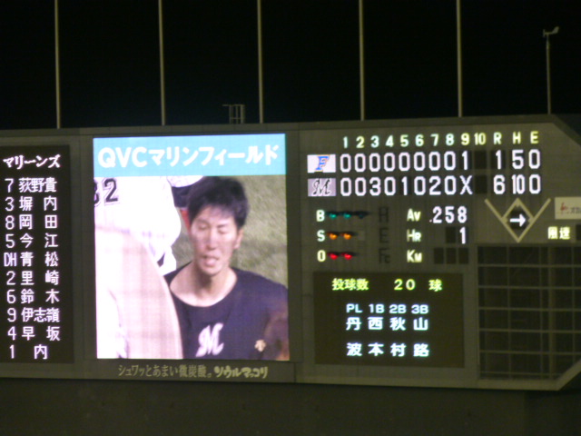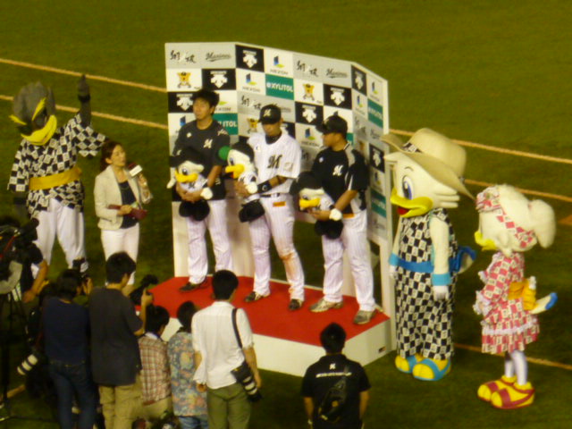 ヒーローは、8回零封の古谷投手と、いいところでタイムリーを打った井口選手と今江選手。