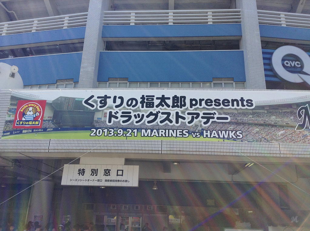 球場外周では「くすりの福太郎」のサンプリング配布が大々的に行われていたため、