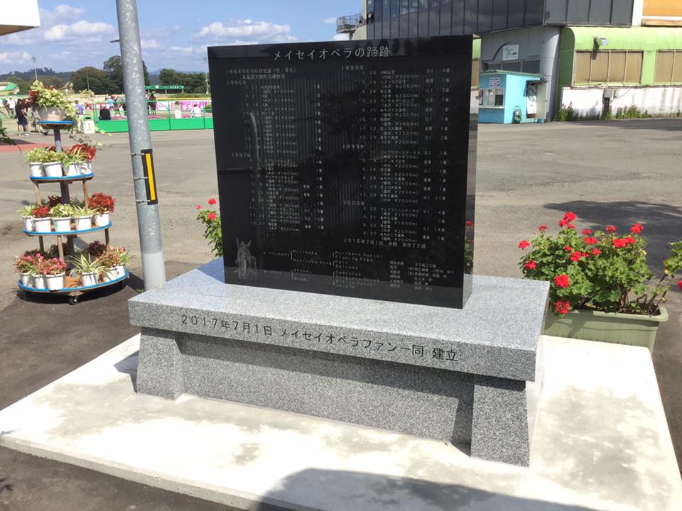 メイセイオペラは昨年亡くなったのですが、JRAでも立派に闘った地方馬の功績を讃えようと、地方中央問わず全国の競馬ファンの募金で建てられた碑です。