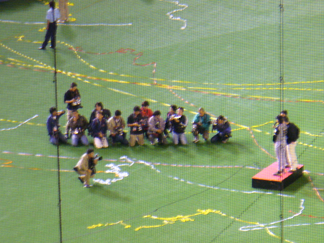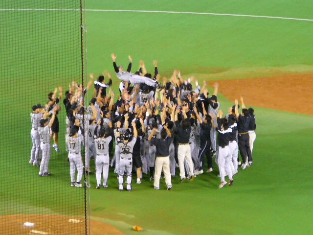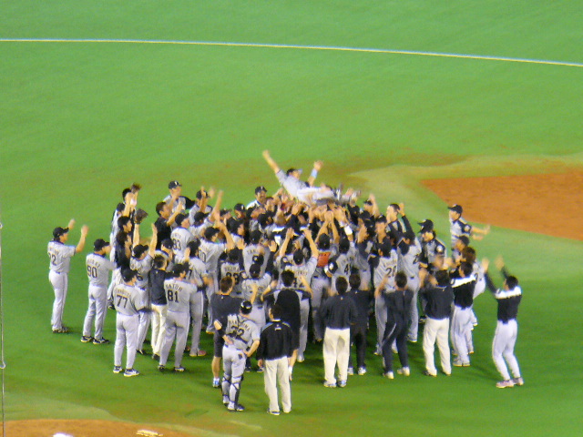 ヒルマン監督と、金子誠選手の胴上げ。(田中幸雄選手は撮れなかった)