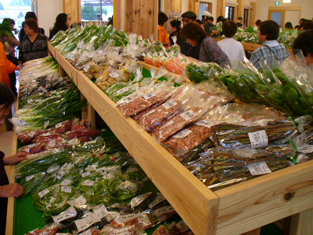 中は、しょいかーご風、農産物などの直売施設。