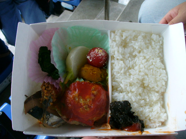 (こっちが1000円の弁当。黄色いマーくんバンダナつき)