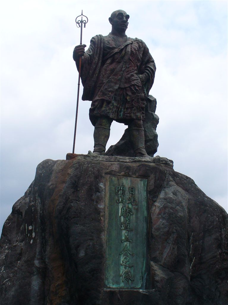 (左)途中で見つけた百合。 (右)日光開山勝道上人の像。
