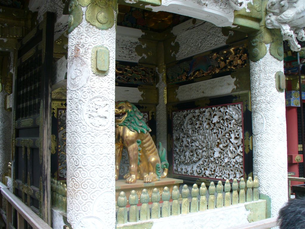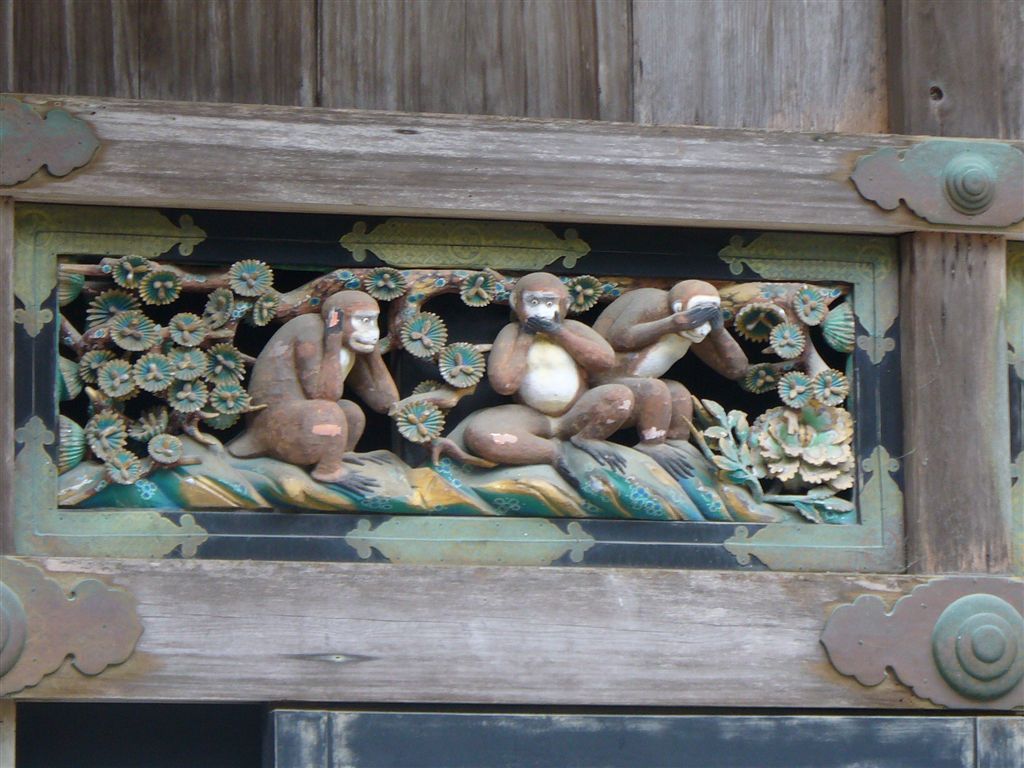 (左)見ざる・聞かざる・言わざる (右)模様が上下逆さまの柱。