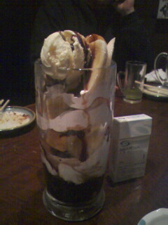 写真は、大ジョッキに入ったパフェ。みんなでつついて、あっという間に無くなりました。