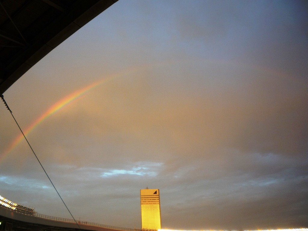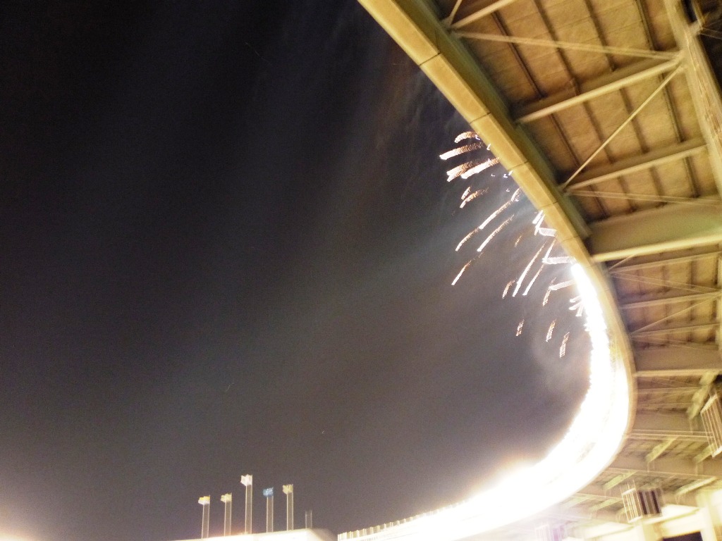夕焼けも花火も、3塁側からの方が見やすいようですね。