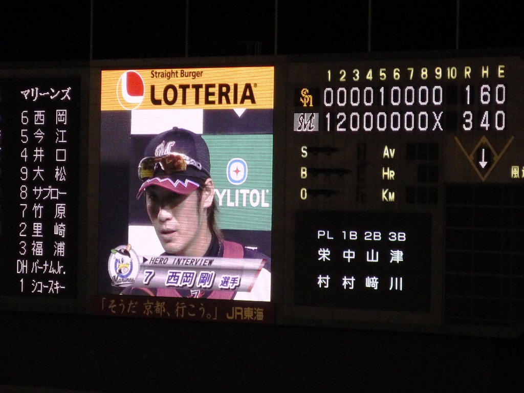 今年の観戦成績は、これで9勝2敗(ビジター2勝を含む)。