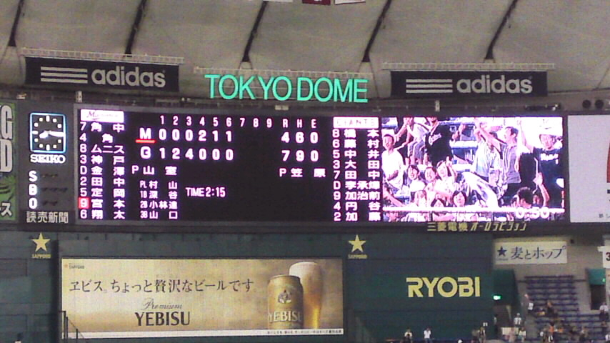今日、ロッテはマリン、読売は神宮で試合。