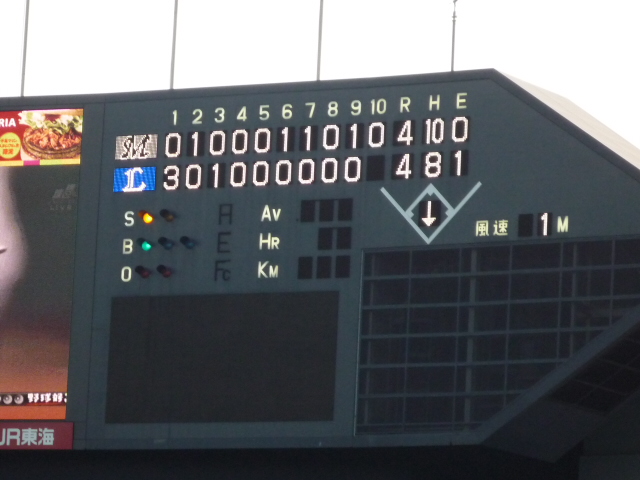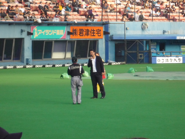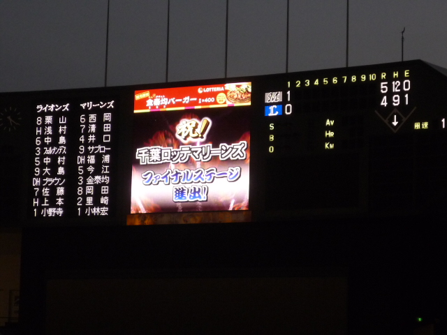 ↑里崎のヒーローインタビューもビジョンに大写しになりました。