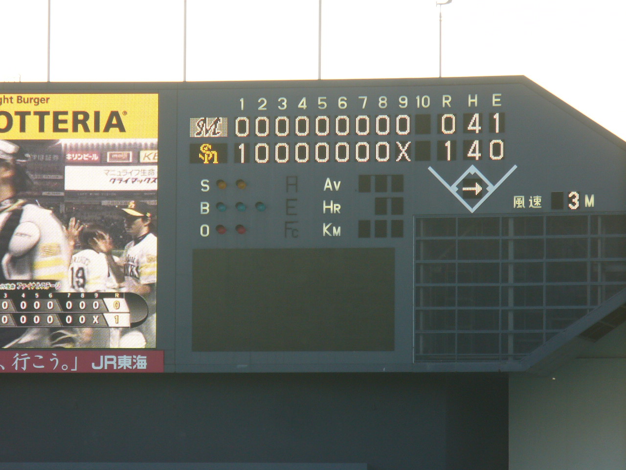 一番の盛り上がりは、8回裏の小久保のぬか喜びシングルヒットの場面でした(^^;)