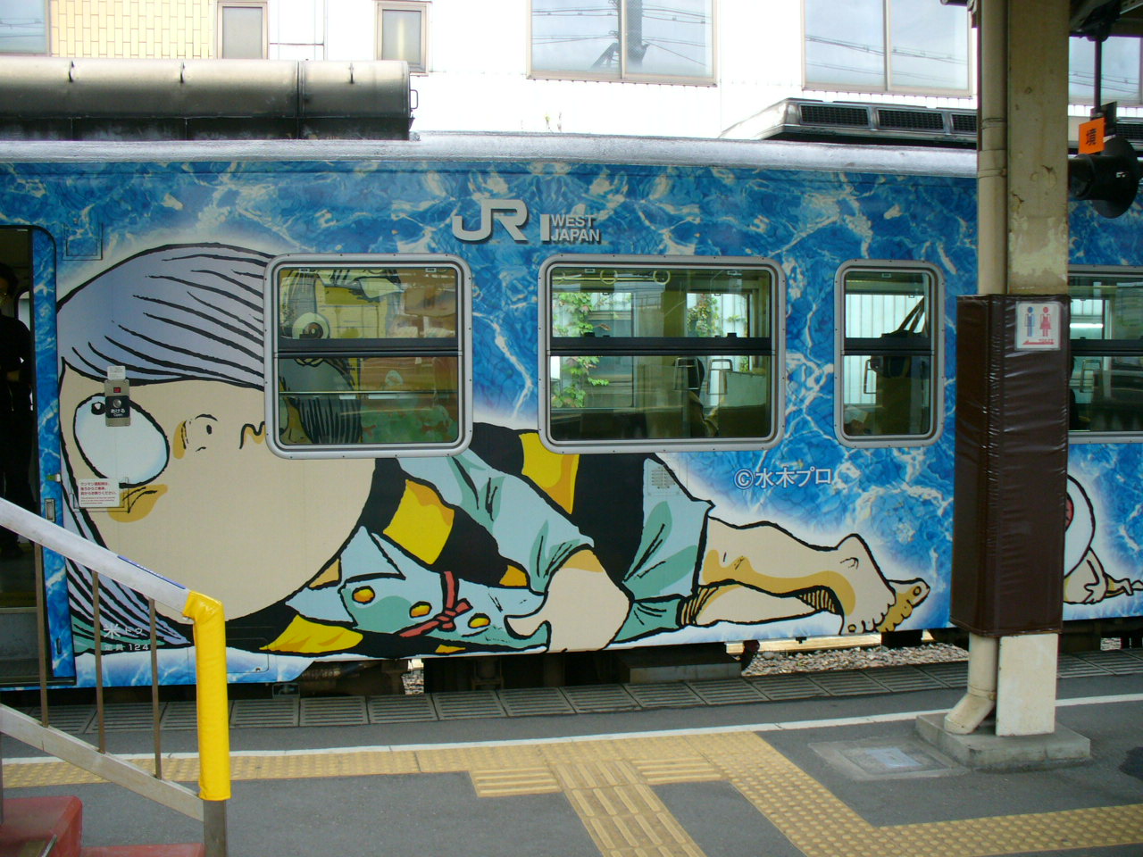 米子駅で乗り換えて、境港線へ。鬼太郎列車がお出迎え。