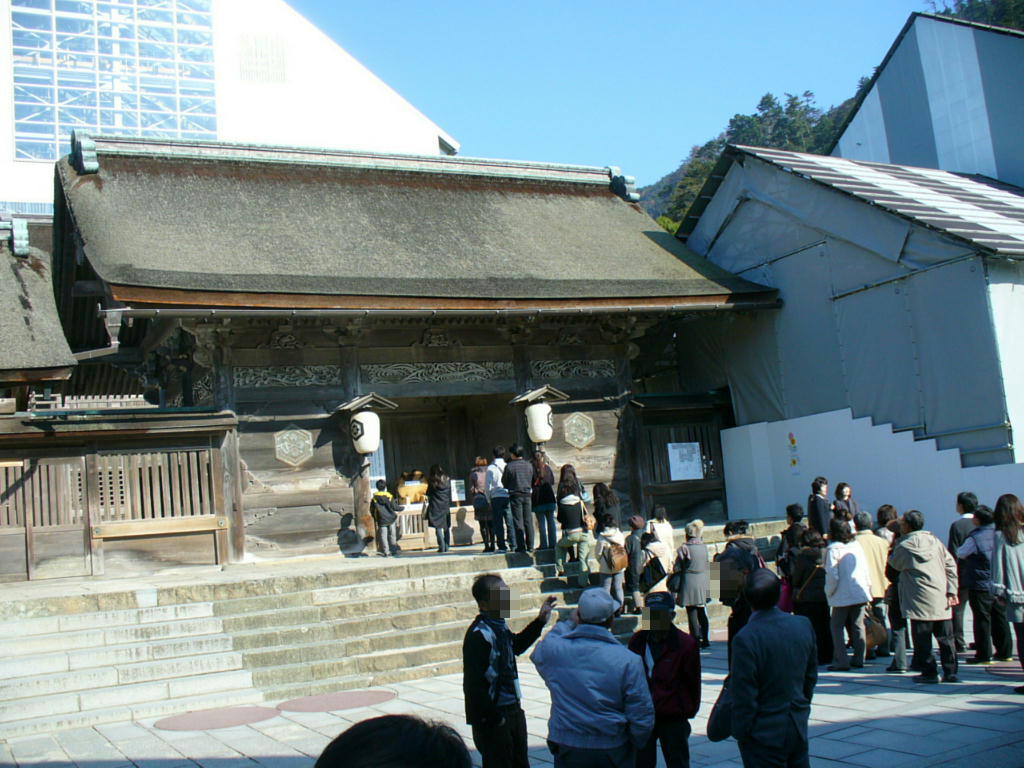 国宝御本殿の御修造のため、仮殿へのお参りになりました。