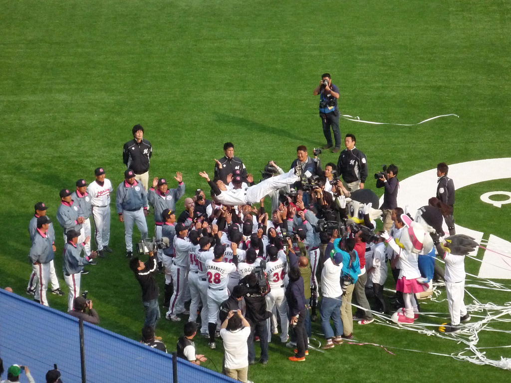 最後は胴上げ。昨年のイースタン最終戦以来です。